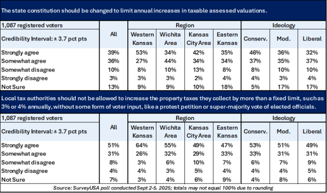 A recent public opinion poll conducted for KPI by SurveyUSA shows 75% of voters want to limit the increase in taxable assessed values, and 82% want some say over mill levy increases.