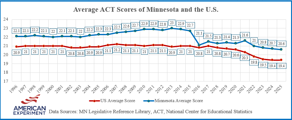 One way to assess Minnesota’s high school educational prowess is to look at ACT scores throughout the years.