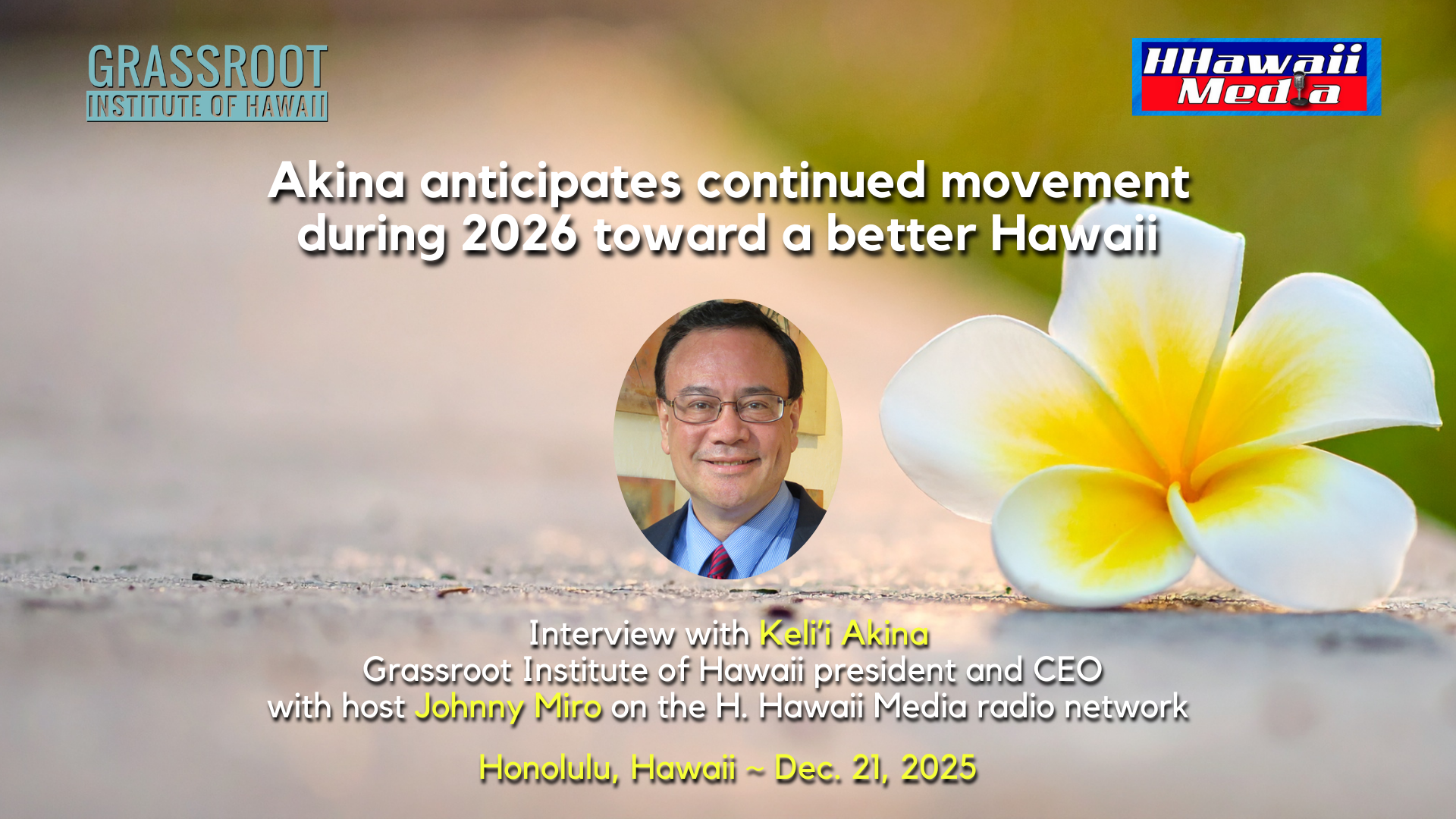 There is much to be upbeat about the past year, according to Keli‘i Akina, president of the Grassroot Institute of Hawaii. And the future looks bright for 2026 as well, he said, speaking this past Sunday with host Johnny Miro on the H. Hawaii Media radio network.