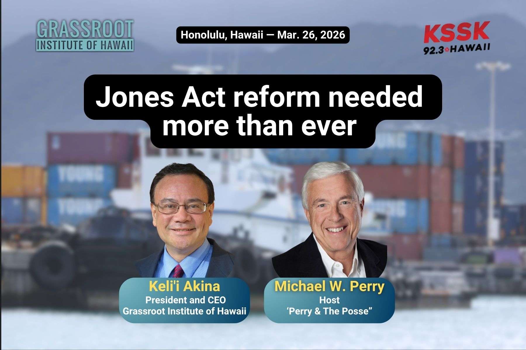 Not long after President Donald Trump issued a 60-day waiver of the Jones Act to help reduce oil prices in the wake of war in Iran, Grassroot President Keli’i Akina sat down with KSSK radio host Michael W. Perry on March 26 to discuss the impact the waiver could have on Hawaii’s energy costs and supply chains.