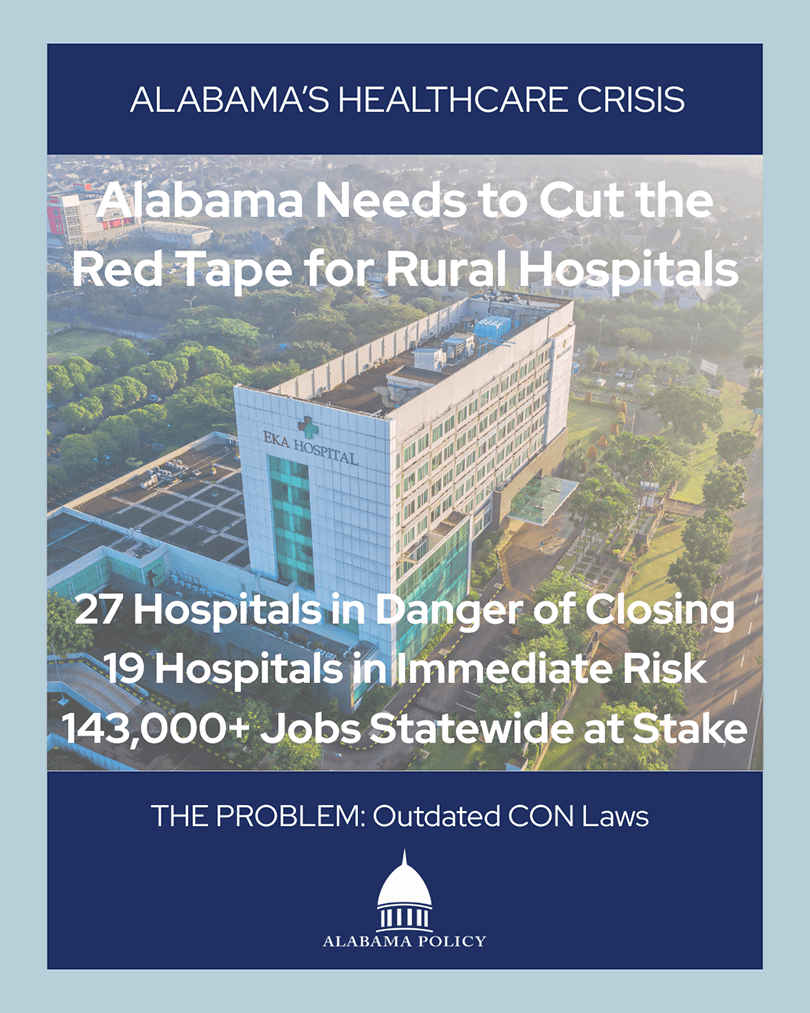 Alabama’s rural hospitals are struggling, and our state’s bureaucratic red tape isn’t helping. The Alabama Hospital Association reports 27 hospitals in danger of closing and 19 in immediate risk. These community hospitals are lifelines for healthcare and local economies. They collectively support over 143,000 jobs statewide.