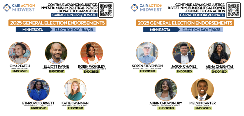 Announced just yesterday (October 31), the Council on American-Islamic Relations (CAIR) endorsed ten (10) candidates running for local office in Minneapolis and St. Paul on the ballot Tuesday.