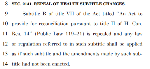 Senate Democrats have used their minority status to block passage of the CR, which requires 60 votes in the Senate, unless Republicans accept their 68-page amendment. That amendment includes a short sentence on page 57 that would repeal all the health care protections Republicans had successfully passed as part of the WFTCA.