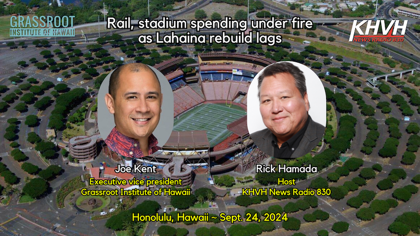 Grassroot Institute of Hawaii Executive Vice President Joe Kent discussed the rail project, the construction of a new Aloha Stadium and the rebuilding of Lahaina this week on “The Rick Hamada Program” on KHVH radio.