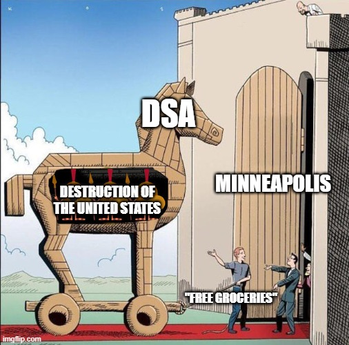 This might be termed “sanewashing.” It reminds me of those Trojan horse memes, where something — like government owned grocery stores — which are bad policy but within the bounds of usual discussion are, in reality, merely cloaks for something totally nuts: “Come for the free groceries, stay for the destruction of Israel,” could be the DSA slogan.