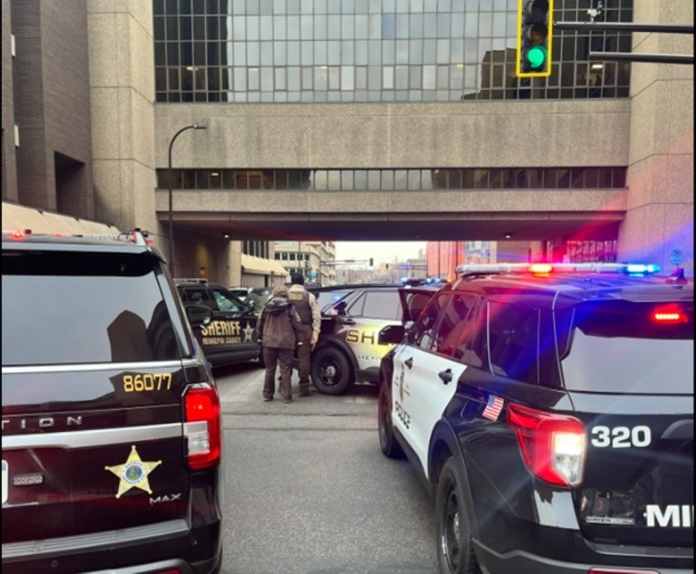 Hennepin County Sheriff’s deputies came upon a person blocking traffic in their car as they sat adjacent to the Hennepin County Medical Center on Chicago Ave. between 7th and 8th streets. The person was in obvious crisis as they began actively cutting themselves on the head with multiple knives. The person was not cooperative with initial deputies who evaluated that it was best to contain the person and get a negotiator on site, rather than push to detain the person too soon and risk having to use deadly force.