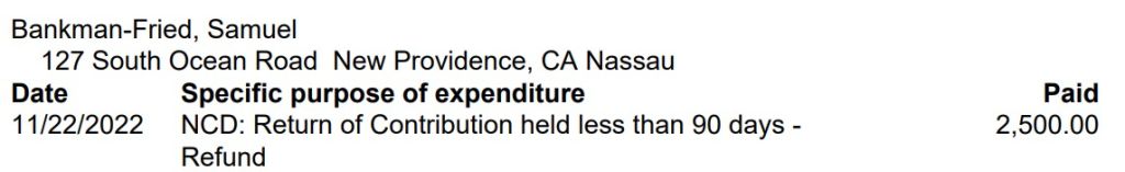 Also in 2022, Elllson returned a $2,500 donation from another notorious fraudster, Sam Bankman-Fried of FTX crypto-currency fame.