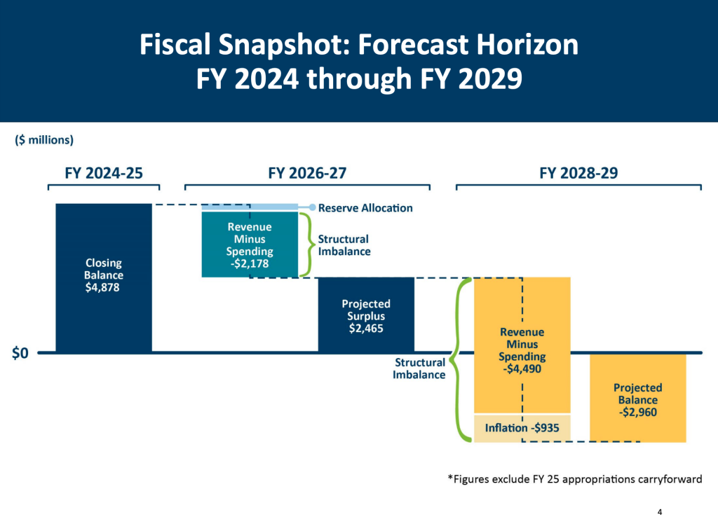 Minnesota Management and Budget (MMB) released the budget forecast Thursday showing a $2.4 billion surplus in the current biennium (2026-27) and a $2.9 billion deficit in the next biennium (2028-29). After the budget presentation, the politicians each took turns offering their spin, I mean, analysis. Here are five quick takeaways from today’s announcement.