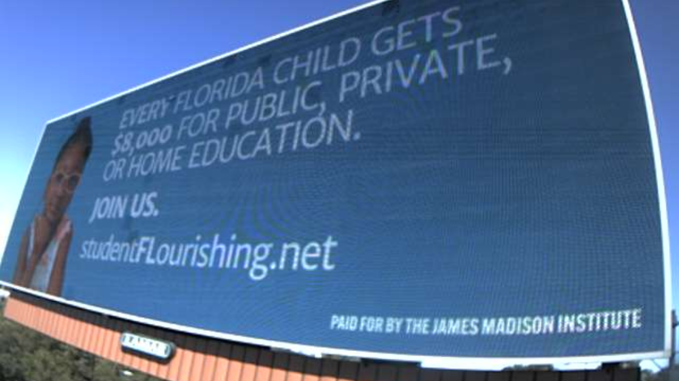 A billboard recently appeared in downtown Atlanta featuring a young schoolgirl with this message: “Every Florida child gets $8,000 for public, private, or home education. Join us.”