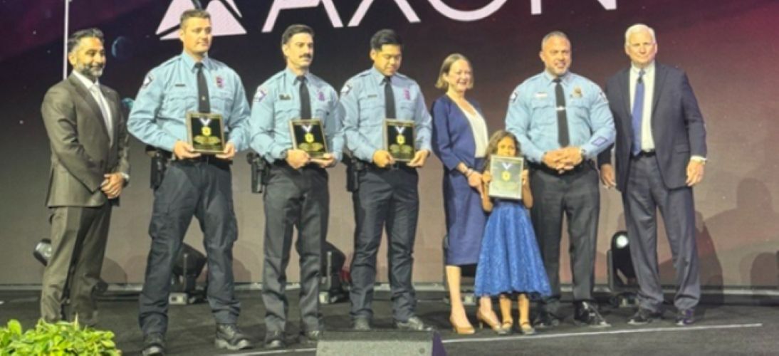 Officer Jamal Mitchell (posthumous), Officer Nick Kapinos, Officer Luke Kittock, and Officer Eric Withanom were recognized for their actions in the response to an active shooter incident in South Minneapolis on May 30th, 2024, which tragically resulted in the shooting death of Officer Mitchell.
