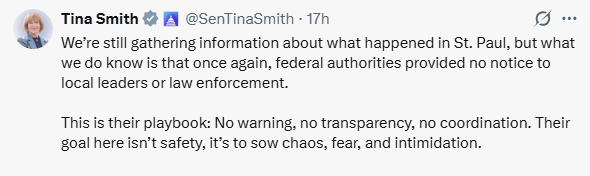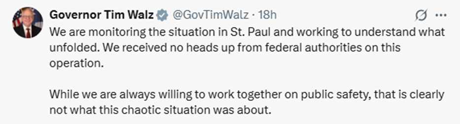 Perhaps no complaint is as egregious as Governor Walz’s suggestion that ICE should be reaching out to his office in advance of making arrests. This is the man who called ICE agents the “modern day Gestapo” during a commencement address at the University of Minnesota’s Law School graduation last spring – an accusation he has repeatedly failed to walk back. To then act surprised when ICE doesn’t share information with his office about enforcement operations is truly rich.