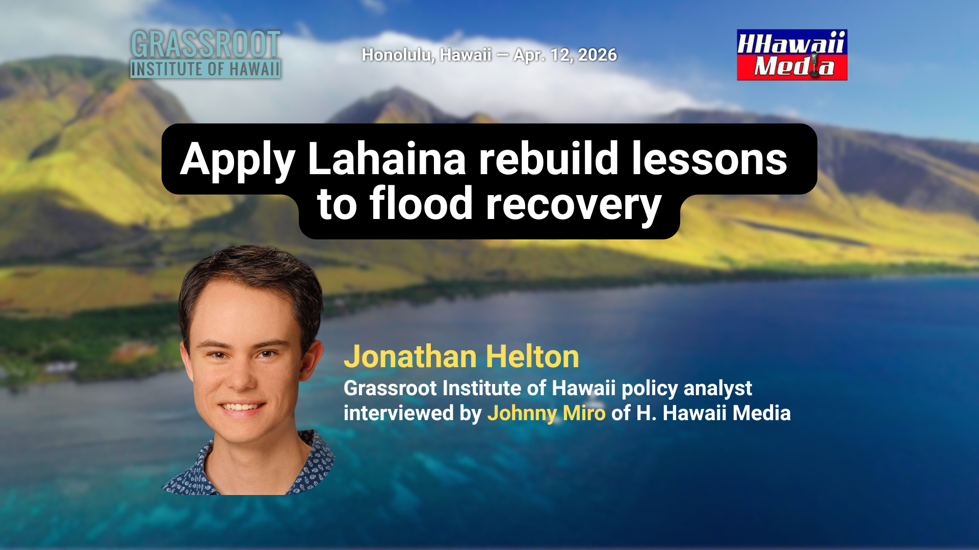 Many of the lessons learned from Maui County’s ongoing wildfire recovery efforts could help streamline statewide efforts to rebuild flood-damaged homes, farms, businesses and infrastructure following the recent Kona low storms, according to Jonathan Helton, policy analyst at the Grassroot Institute of Hawaii.