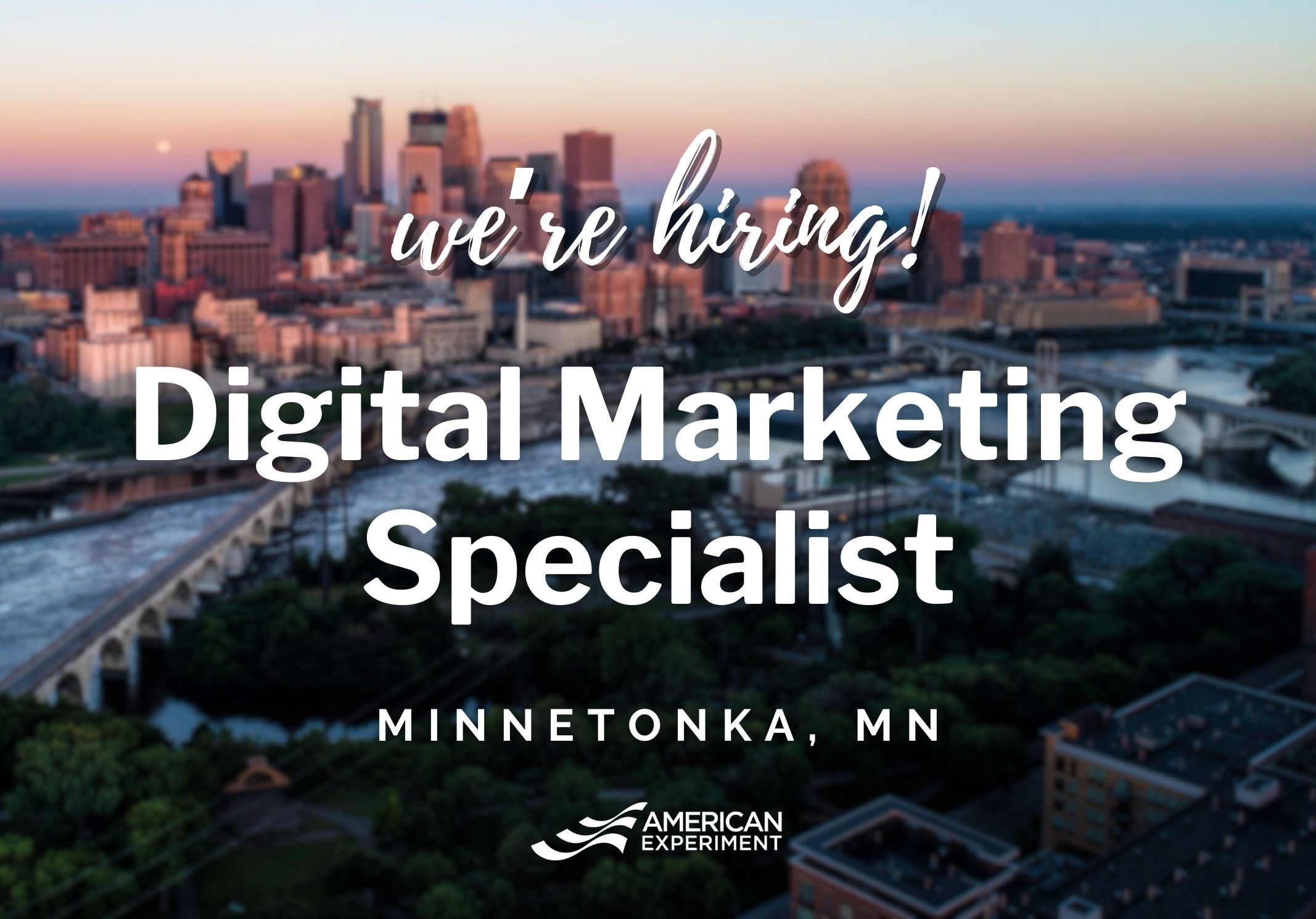 The Digital Marketing Specialist will make a difference every day working as a key member of our award-winning marketing and communications team. American Experiment prides itself on going beyond the white paper to conduct marketing campaigns that impact legislation and regulation and change hearts and minds. The Digital Marketing Specialist will be responsible for executing American Experiment’s email marketing efforts (including cultivating a high-quality owned audience), promoting two podcasts with organic and paid content, and supporting events and fundraising via digital and email marketing.