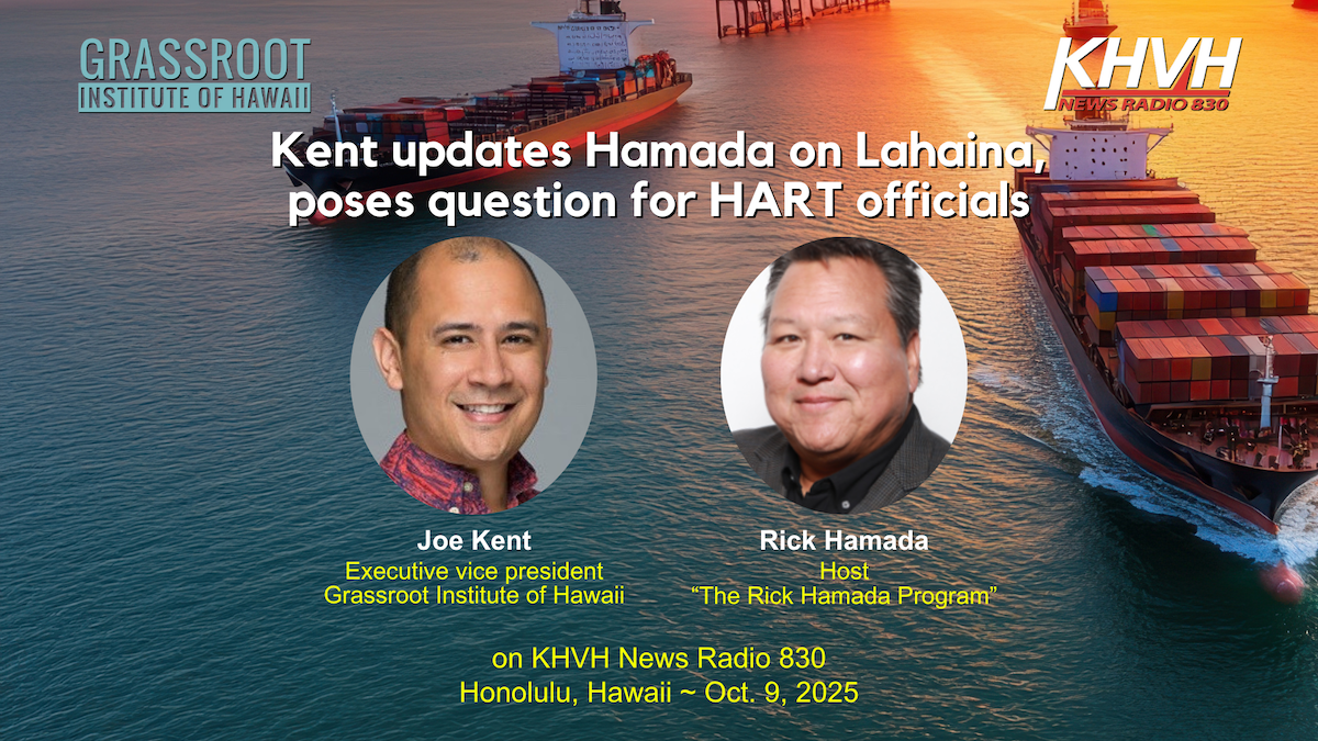 Rick Hamada: And I’m delighted that Joe Kent with the Grassroot Institute of Hawaii is online with us for a chat. And I’m glad we could find some time together, Joe. Good morning.