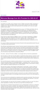 In a Sept. 19 email to members, 4Cs president Seth Freeman outlined faculties priorities, including lighter faculty workloads and more full-time hires. But the most striking revelation was what the governor has told SEBAC behind closed doors: the state cannot afford another four more years of guaranteed raises alongside sweetened health care and pension benefits.