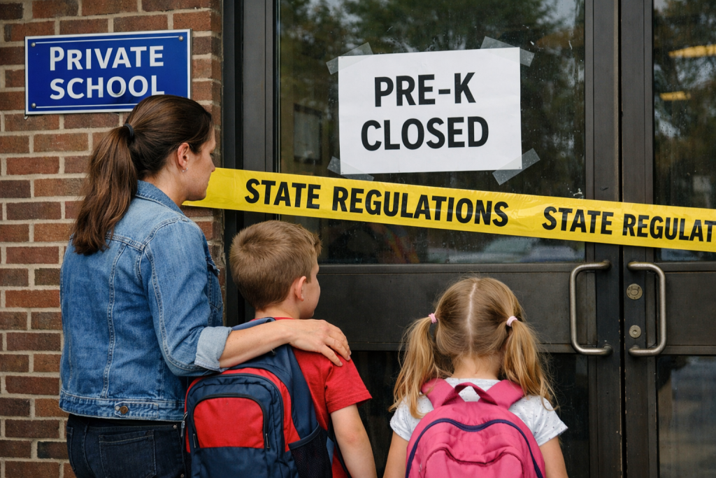 The new law requires private school pre-K programs, except for Montessori programs, to be licensed by the state as “early learning centers,” still colloquially known as daycares. This means they are subject to ongoing compliance monitoring and inspections by state education, health, and fire marshal agencies. They must also meet higher child-staff ratios and adhere to new state mandates, some of which private school leaders claim will cost tens to hundreds of thousands of dollars—costs they would have to pass along to tuition paying families or else shut down their pre-K program. State law does not require licensing for public school pre-K programs.