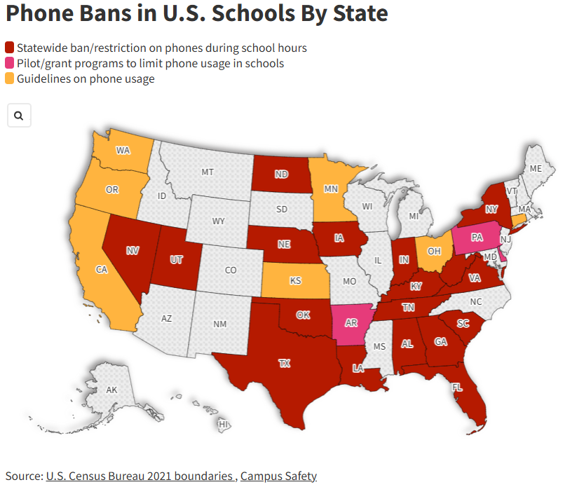 The social pact works best when school administrators share the vision. Around the country, many states have heavily limited or outright banned smart phone usage for students.