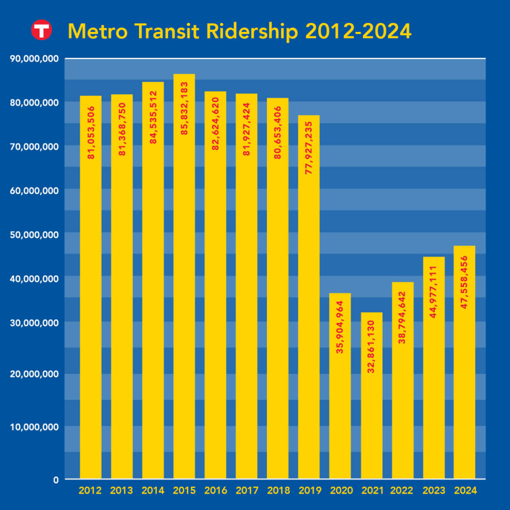 In a recent article on a campaign to get more Twin Cities residents using Metro Transit, the Star Tribune wrote that “[t]he COVID-19 pandemic caused a rapid drop-off in transit use…” But there is more to the story than this.