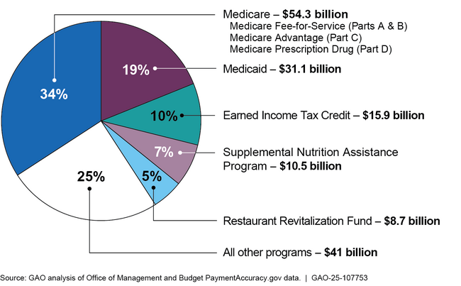 The Big Beautiful Bill (O3B) provides for more routine redetermination to make sure ineligible enrollees are disenrolled. The General Accounting Office outlines $85 billion in improper payments in Medicaid and Medicare in 2024.