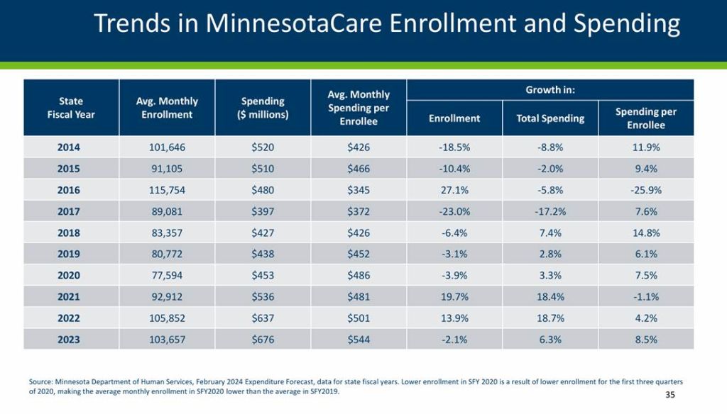 MinnesotaCare was designed as a premium-supported insurance plan that would fill the gap for low-cost health plans. But as it turns out, the state is really bad at collecting premiums. In 2023, DHS waved all money due to MinnesotaCare by policy holders. It also cancelled or reduced premiums and committed to return any money recently paid to MinnesotaCare. That’s not new. In 2018, the state was owed $30 million in unpaid MinnesotaCare premiums, but decided it was too hard to collect, so they forgave all that money too.
