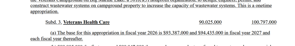 To put that into perspective, the base funding for Minnesota Dept. of Veterans Health Care spending in 2025 was passed in the same 2023 budget that enacted MinnesotaCare for illegal aliens. $100,797,000 was appropriated for 2025.