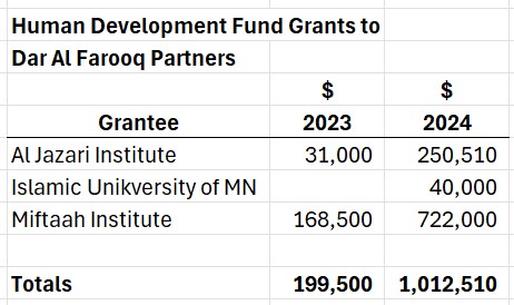 HDF also did well by doing good, regranting well over $1 million to Dar Al Farooq partner organizations,
