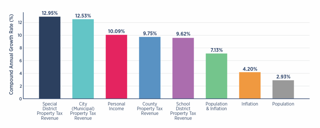 If left unchecked, Florida’s property tax growth could worsen affordability and erode the state’s economic competitiveness. High-growth counties such as Miami-Dade, Hillsborough, and Orange already rely on property taxes for more than a third of their budgets. Without structural reform, future increases could price more families out of homeownership and deter businesses from expanding in the state. By contrast, states that have paired strict spending caps with revenue limitations—such as Colorado’s Taxpayer Bill of Rights (TABOR)—have demonstrated that it is possible to align government growth with the average taxpayer’s ability to pay for spending. Florida lacks such a constitutional mechanism, leaving homeowners vulnerable to escalating property tax bills driven by rising valuations.