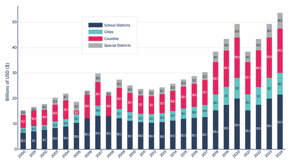- Without firm local limits, reductions can be erased if counties or cities raise their own levies.