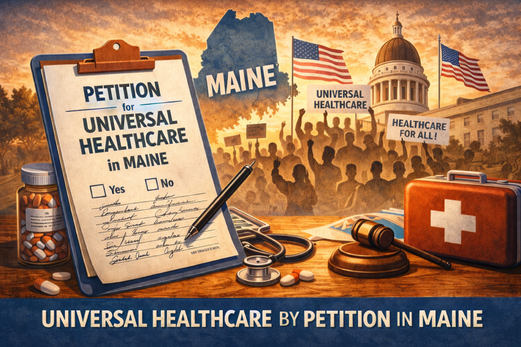 The third petition instructs the Legislature’s health committee to draft legislation establishing a publicly funded universal healthcare system for all Maine residents by 2028.
