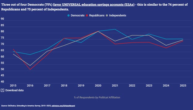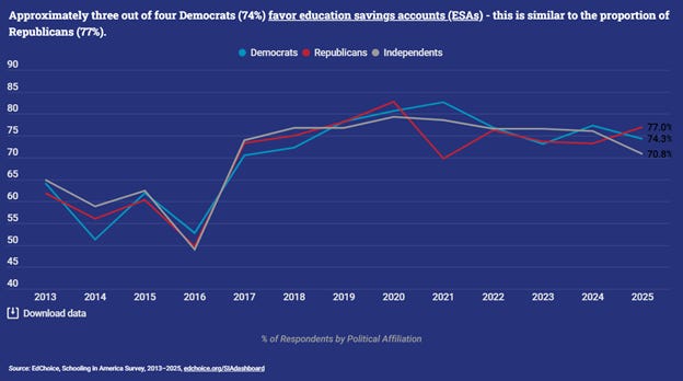 Policymakers would do well to pay attention. As education continues to be a top concern for voters, especially as achievement challenges persist, ignoring this bipartisan trend could come at a political cost. Regardless of party, parents are saying the same thing: one size doesn’t fit all, and families deserve options and ways to access them.