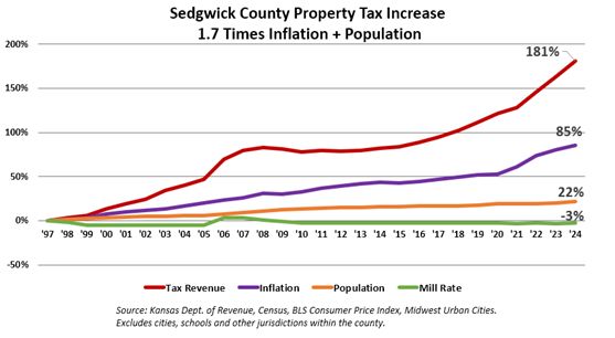 Threatening service cuts or rate increases is another favorite scare tactic to push back against property tax relief, and Sedgwick County claims it would need a large mill rate hike “to maintain current services” if valuations are rolled back to 2022 levels (which is another popular feature of SCR 1616).