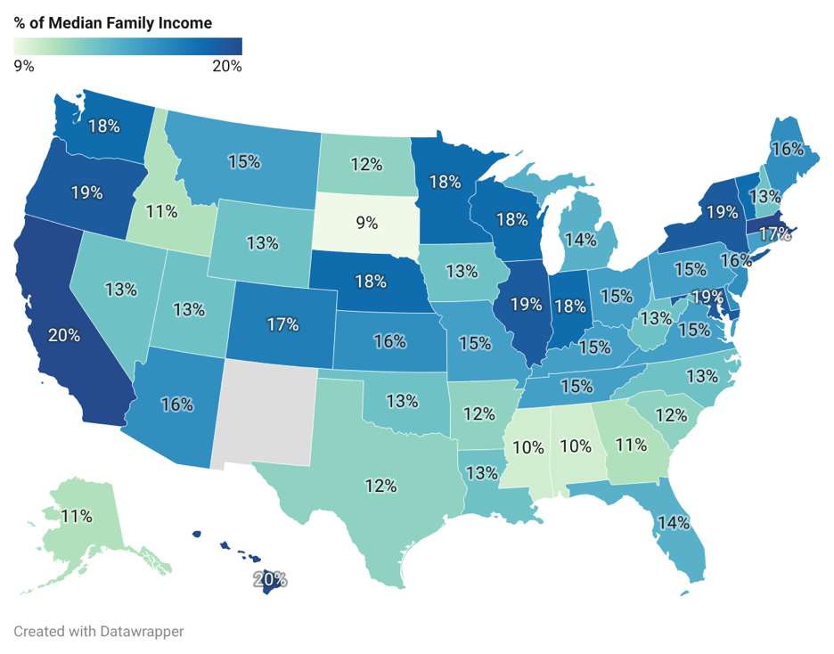 Figure 1: Annual cost of center-based infant care as a percent of Median family income