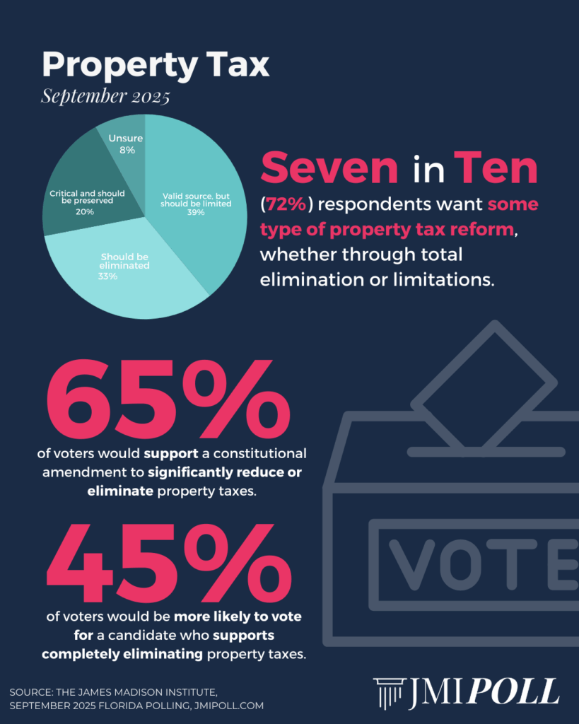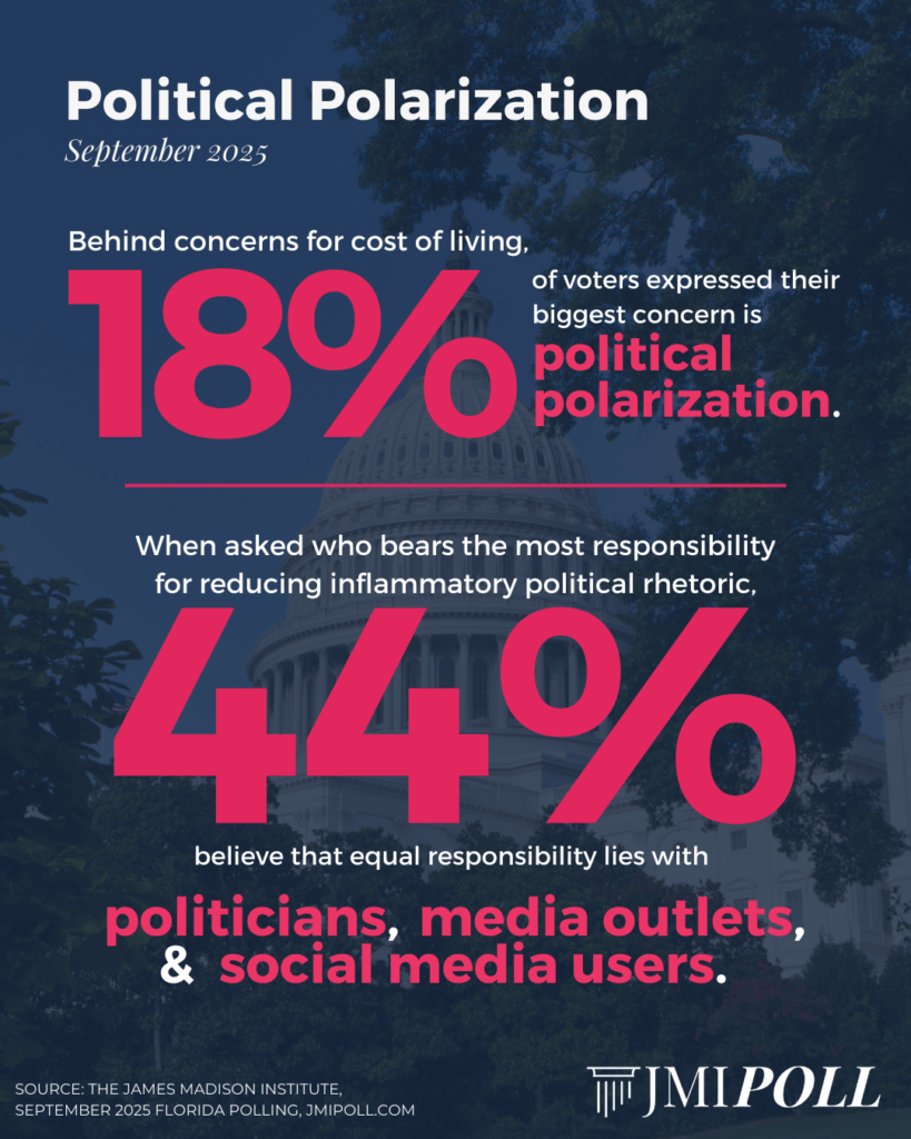 Today, The James Madison Institute unveiled the latest installment of the JMI Poll, a comprehensive survey of 1,200 registered Florida voters, offering a revealing look at voter priorities and preferences across key policy and political issues including taxes, education choice, economic pressures, vaccines, and the 2026 elections.
