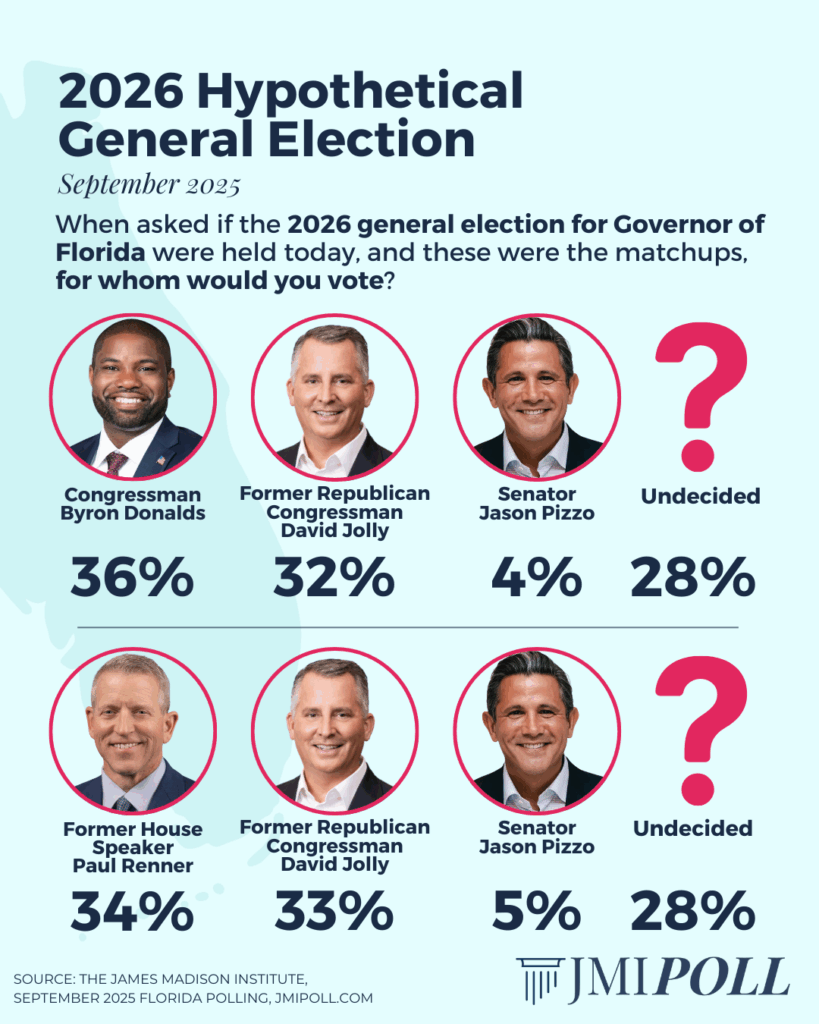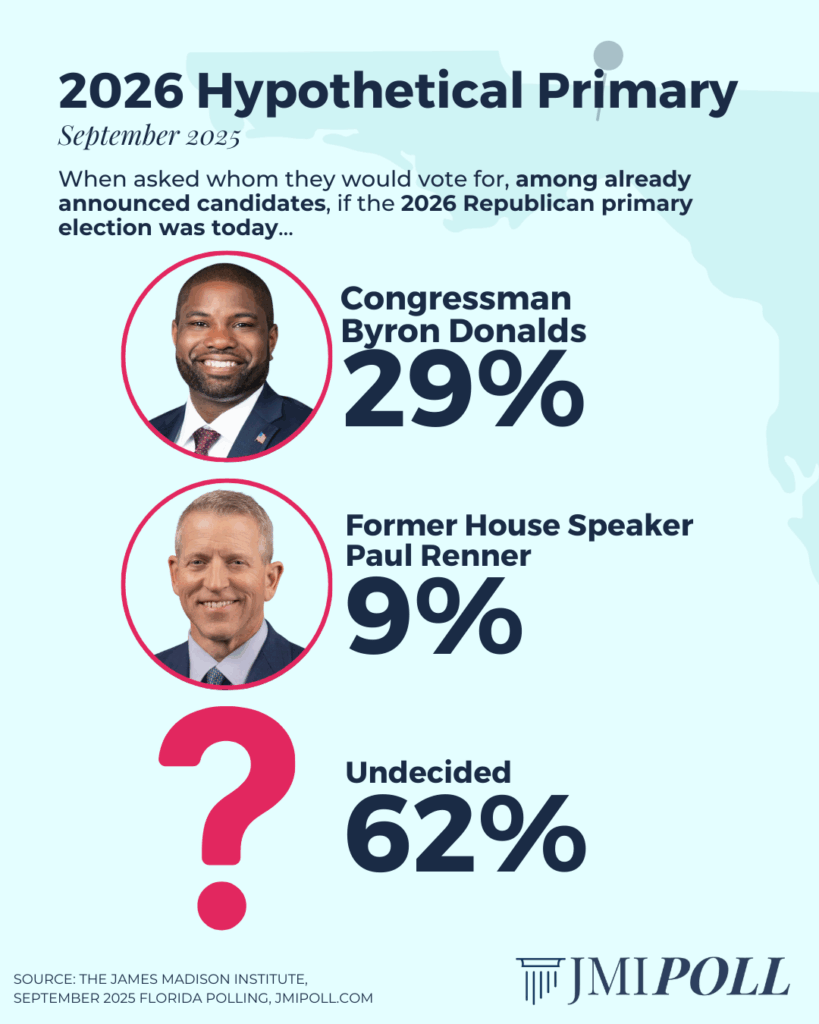 Ahead of the 2026 Florida Gubernatorial Elections, the latest JMI Poll shows many voters remain undecided.