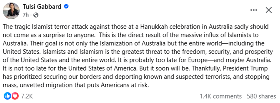 Just yesterday, the Director of National Intelligence, Tulsi Gabbard, issued the following statement on social media: