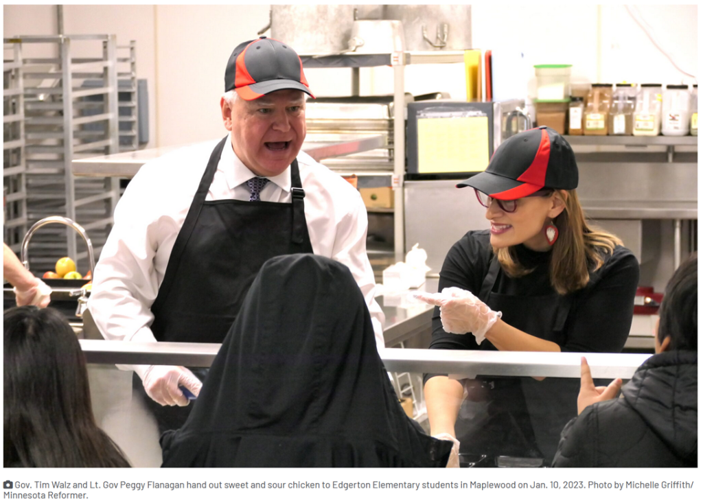 In a January 10, 2024, media event at Edgerton Grade School in Maplewood, MN, Mr. Walz promoted his “free” school lunch program. He is very proud of the program which is arguably his most effective political victory. But his new free school lunch program was 20% over budget and running out of money. Walz characterized the challenge as “a good problem to have.” He went on to mock critics of the measure who said rich people should pay for their kids’ lunch.