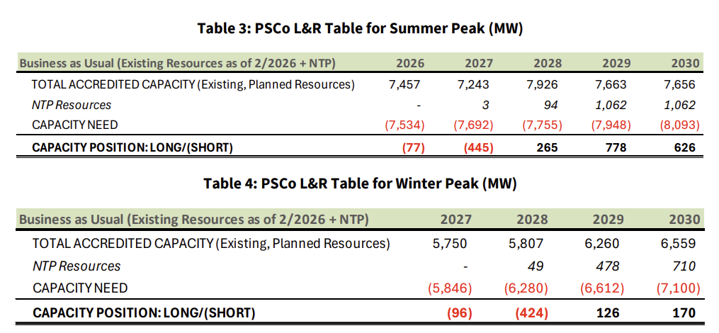 According to Xcel’s filing, the next two years are likely to see capacity shortfalls. Even in 2028, reserve margins, or the percentage of capacity exceeding expected peak load, will be “challenged.” The PUC already reluctantly allowed Comanche Unit 2 to stay online through 2026, though it was supposed to retire at the end of 2025. Even with Comanche 2 as a lifeline, after 2028, when the outlook turns slightly positive, the company warns that the “margin for success is razor thin.”
